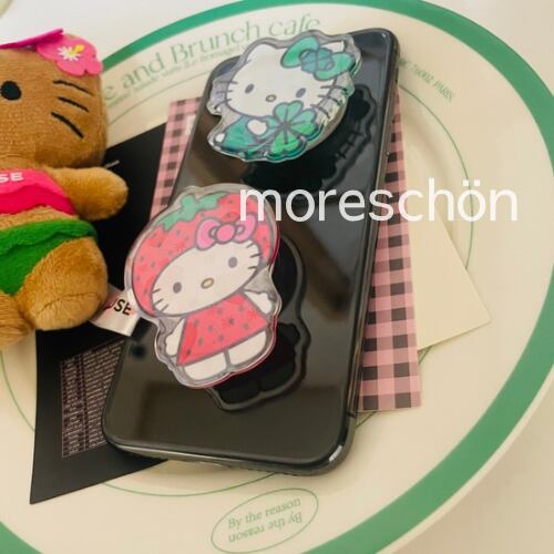 ♡送料込 ♡追跡有 ♡即日発送 【全機種対応】 いちごキティ クローバーキティ ホログラム グリップトック / hellokitty ハローキティ 平成ギャル 苺 ストロベリー strawberry イチゴ 四つ葉 シロツメ キラキラ ラメ スマホグリップ バンカーリング スマホリング ポップソケット GRIPTOK 日本未入荷 韓国限定 伸縮可 落下防止 滑り止め イヤホン収納 携帯 スマホアクセサリー y2k 韓国