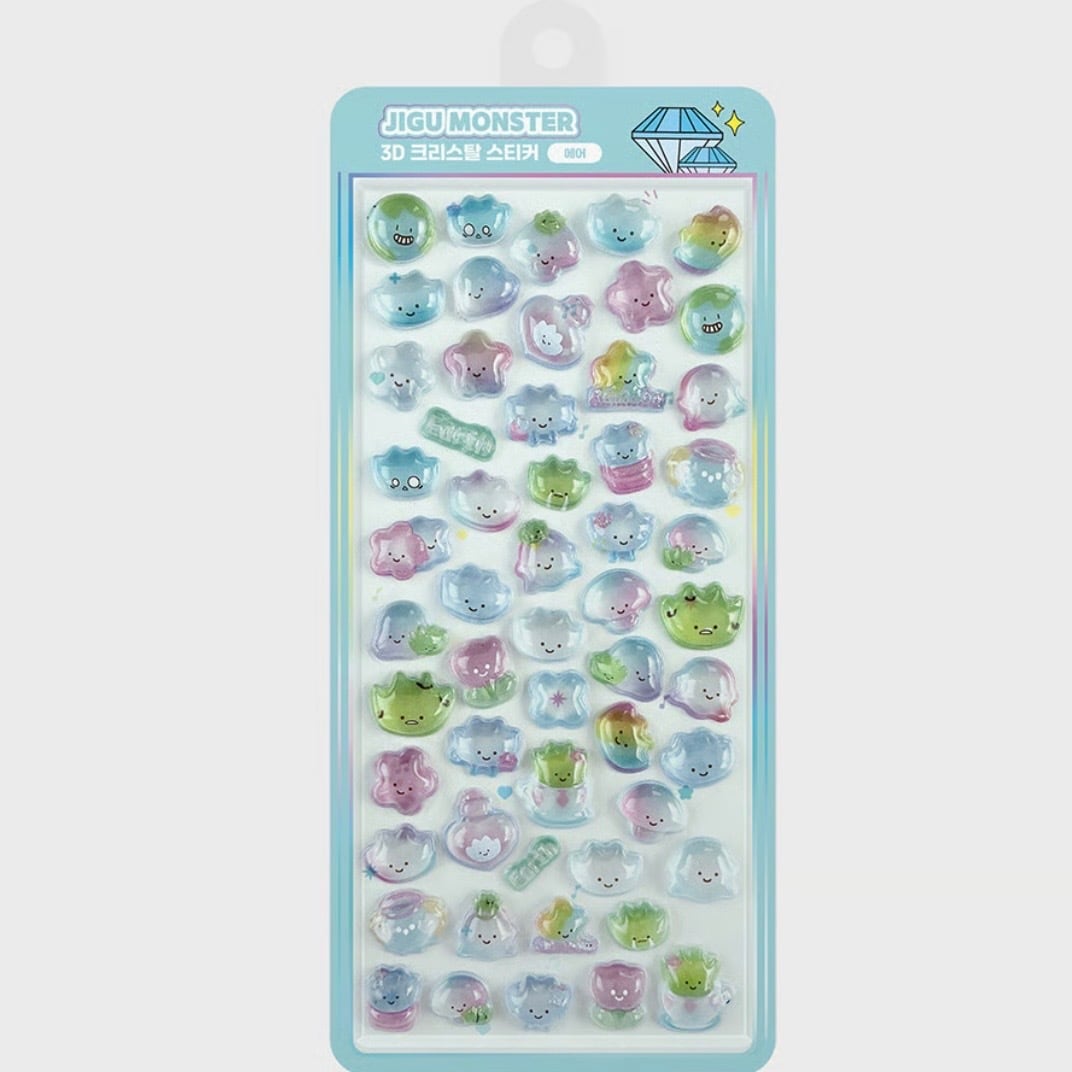 韓国限定 JIGU MONSTER エア ブルー 青 3D CRYSTAL STICKER 立体 地球 モンスター シール ステッカー クリスタル