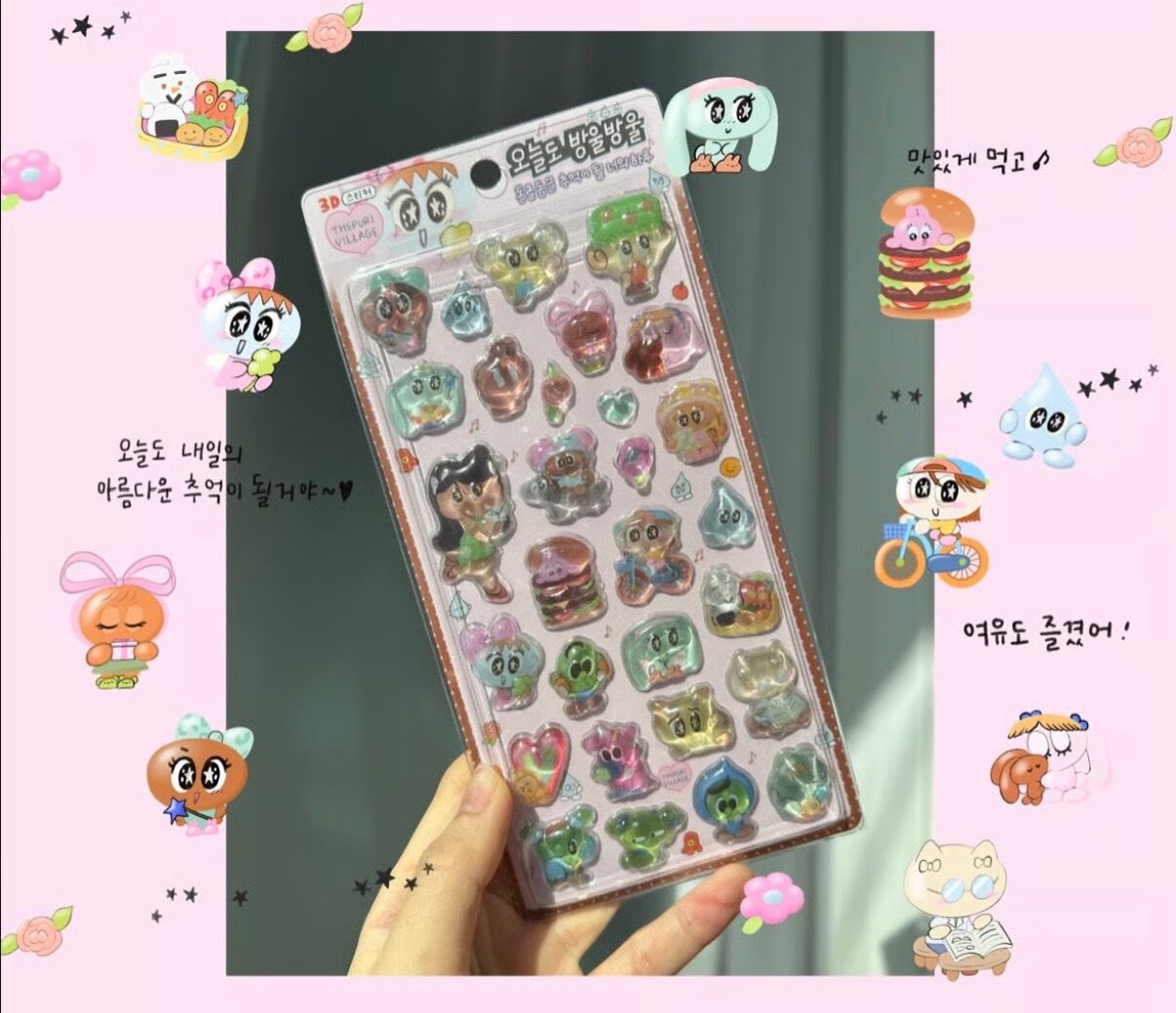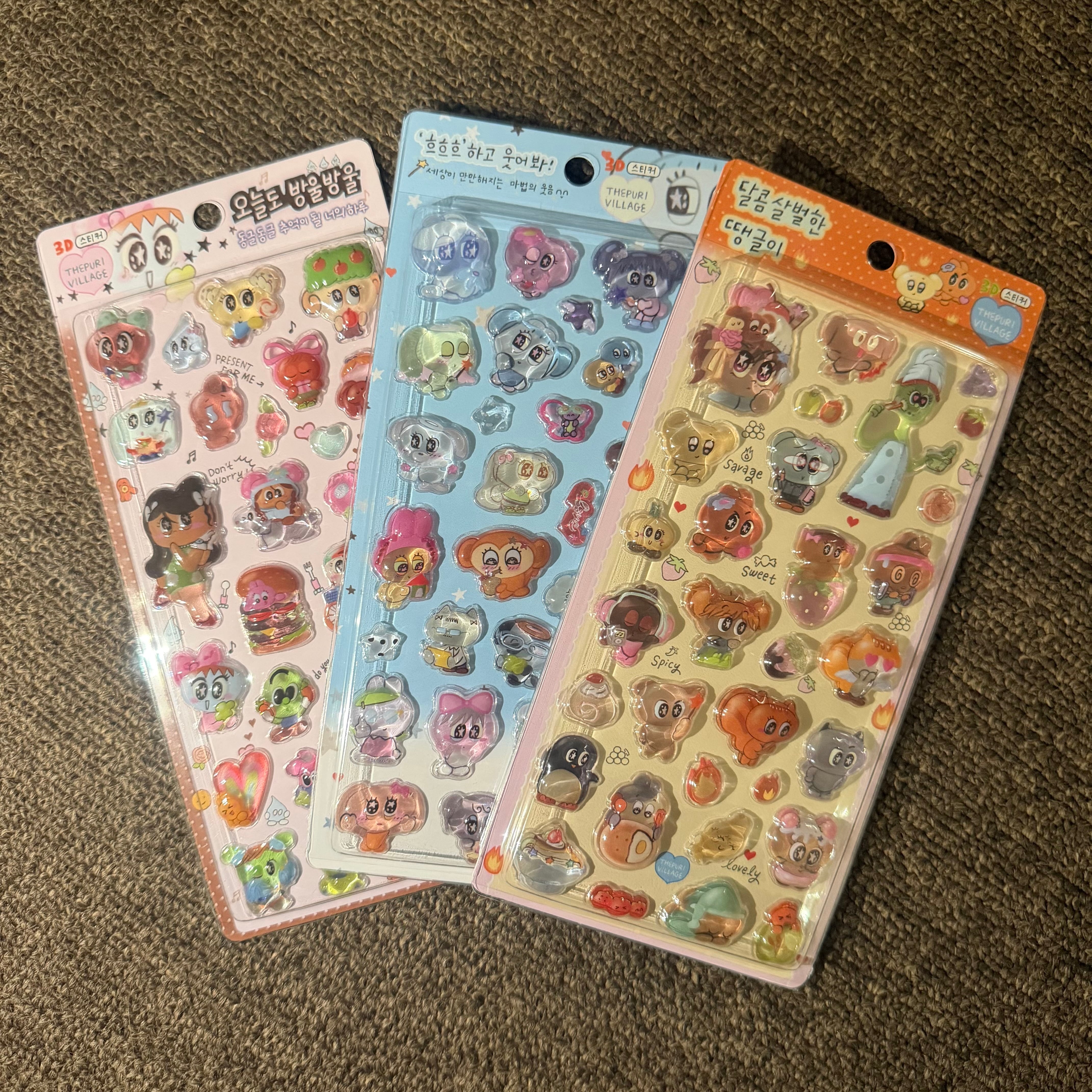 韓国限定 THE PURI VILLAGE 3種セット 3D CRYSTAL STICKER 立体 シール ステッカー ぷっくり クリスタル プリビレ 韓国作家 デザイン